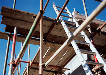 无井架附壁式爬模是由操作平台和外提升系统组成的(见图1)。操作平台固定在随筒身爬升的导板(槽钢14a)上,用8个3 t倒链做为自身提升系统,随导板升高而升高;外提升系统在操作平台中心设有上料吊笼,用于载人和混凝土运输,在操作平台上部还设有抱杆,用于吊运钢筋,提升动力分别为5 t电动卷扬机和3 t手动卷扬机。